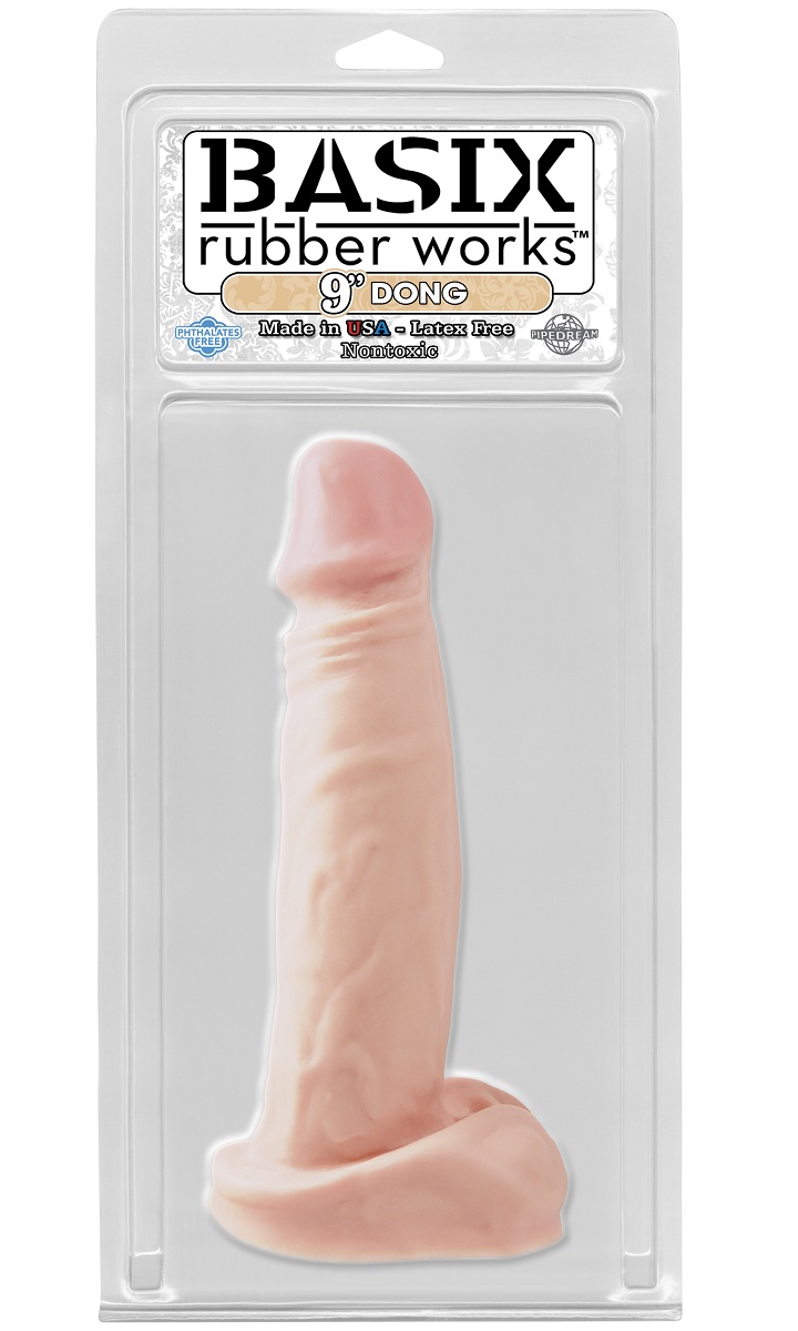 Большой девятидюймовый фаллоимитатор с мошонкой телесного цвета из пвх.