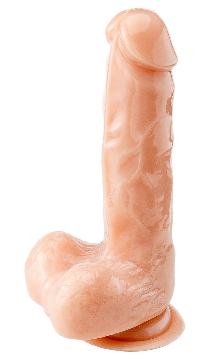 Телесный реалистичный фаллоимитатор на присоске для фиксации на плоскости. Имеет богатый рельеф поверхности. В комплекте мешочек для бережного хранения.