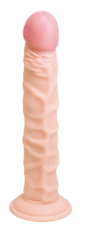 Телесный фаллоимитатор с рельефом. Приятный на ощупь и гибкий. В основании надёжная присоска.
