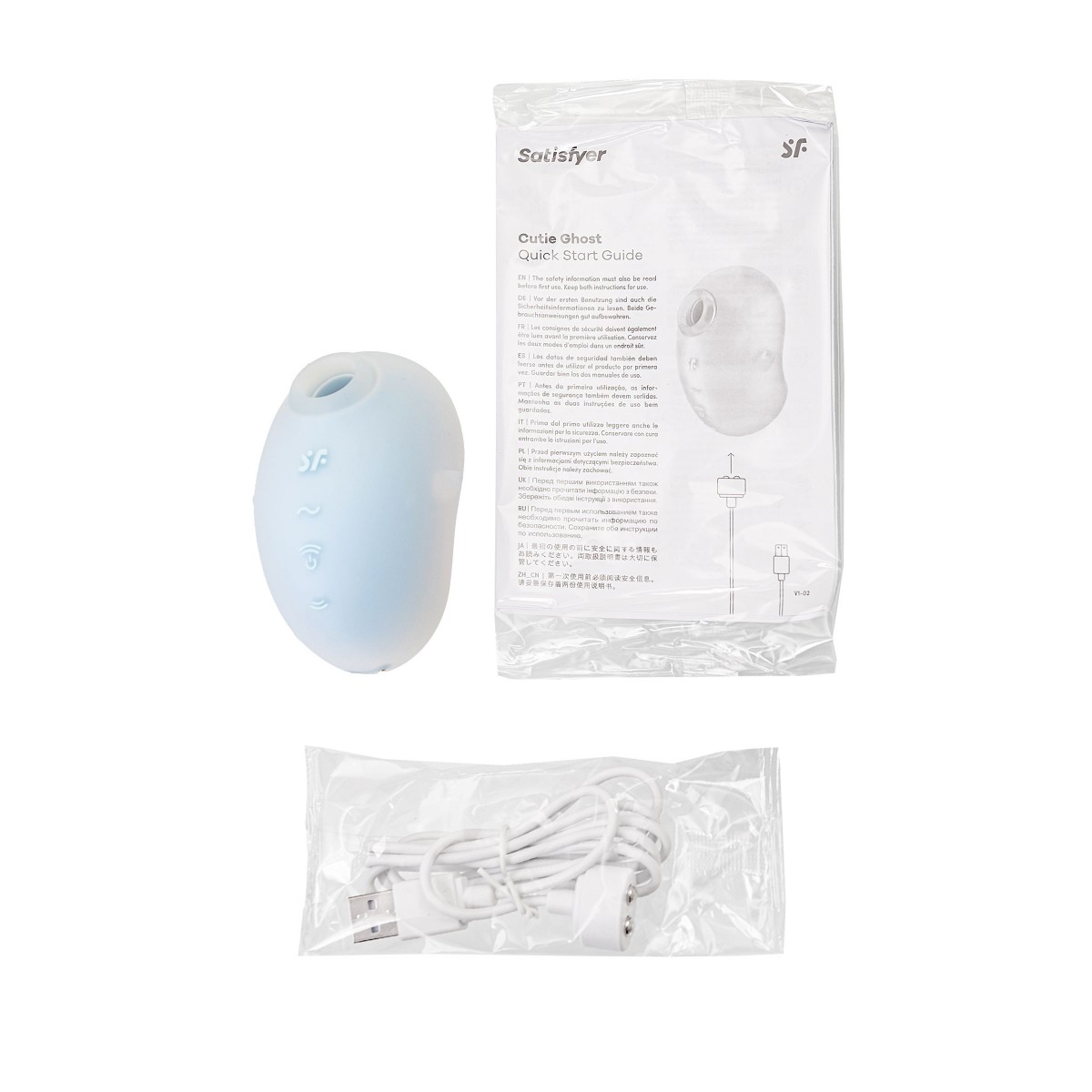 Не дайте этому милому облику вас обмануть — Satisfyer Cutie Ghost, выполненный в стильном голубом цвете, готов подарить вам впечатляюще мощные оргазмы! Этот вакуумный стимулятор клитора с вибрацией сочетает в себе две мощные технологии: волны давления и вибрацию, которые будут захватывать ваш клитор с каждой секундой. Легкий и компактный, он станет вашим верным спутником как дома, так и в путешествиях. С его 11 уровнями интенсивности волн давления и 12 режимами вибрации, вы можете настроить стимуляцию под свои предпочтения и наслаждаться разнообразными ощущениями. Два независимых мотора позволяют вам выбрать, как именно получить удовольствие — хотите ли вы нежное покалывание или глубокую вибрацию, выбор за вами. Satisfyer Cutie Ghost не только компактный и легкий (вес всего 135 г), но и изготовлен из приятного на ощупь медицинского силикона, который бережно заботится о вашей коже. Размеры устройства делают его удобным для использования в любой ситуации. Этот вибростимулятор также оснащен водонепроницаемым покрытием (IPX7), так что вы можете смело брать его с собой в душ или ванну для дополнительных чувственных удовольствий. После использования его легко чистить, а встроенный литий-ионный аккумулятор заряжается с помощью магнитного USB-кабеля, обеспечивая вам бесперебойное удовольствие.