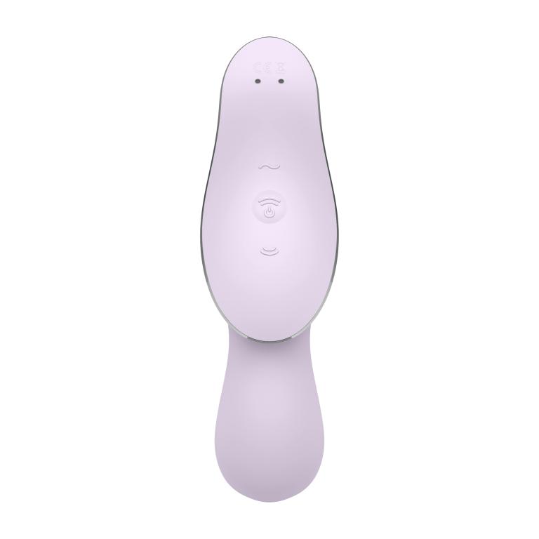 Satisfyer Curvy Trinity 2 - двойной вибростимулятор тройного назначения. Он стимулирует вакуумными волнами клитор, при этом противоположный конец приятно вибрирует, стимулируя всю зону вульвы. Также его можно отдельно использовать для стимуляции точки G. Многофункциональный вибростимулятор выполнен из безопасного силикона, полностью водонепроницаем. Количество режимов вибрации - 12, 11 скоростей вакуумной стимуляции. Управление моторами раздельное. Магнитная USB-зарядка в комплекте. Рабочая длина - 7,5 см. Время зарядки - 3 часа. Время работы - 1 час.