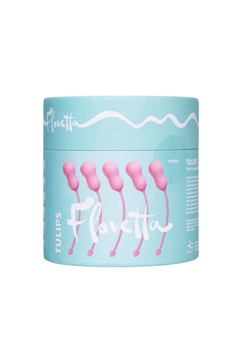 Набор из 5 вагинальных шариков Набор вагинальных шариков - настоящий must-have для всех представительниц прекрасного пола, вне зависимости от возраста и физиологических особенностей. Набор Tulips состоит из 5 двойных шариков, разного веса и диаметра. Длиный силиконовый хвостик поможет без проблем извлекать шарик после применения. На хвостике каждого шарика есть буквы от А до Е, где А - самый лёгкий шарик, а Е - самый тяжелый шарик. Начните тренировки интимных мышц с самого легкого шарика и увеличивайте постепенно вес, ориентируясь на свои ощущения. Шарик A: длина - 5 см, диаметр - 2,2-3,1 см., вес - 30 гр. Шарик B: длина - 5 см, диаметр - 2,2-3,5 см., вес - 40 гр. Шарик C: длина - 5 см, диаметр - 2,1-3,3 см., вес - 50 гр. Шарик D: длина - 5,3 см, диаметр - 1,9-2,7 см., вес - 60 гр. Шарик E: длина - 5,3 см, диаметр - 1,9-2,6 см., вес - 70 гр.