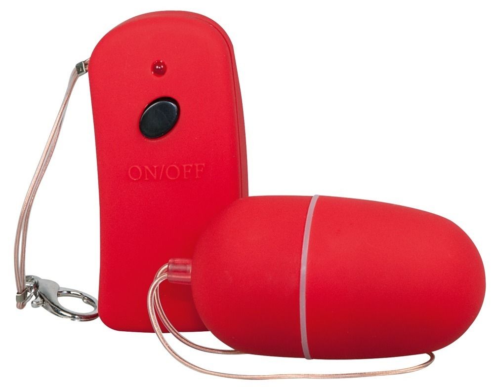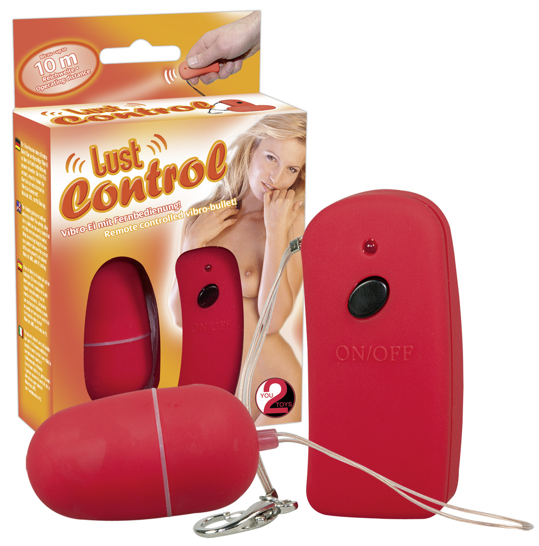 Красное виброяйцо с пультом ДУ Lust Control. Дальность действия пульта - 10 метров. Батарейки в комплекте.