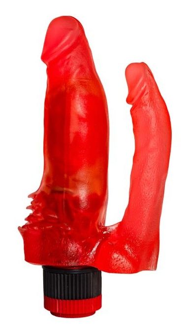 Двойное удовольствие для вас! Вибромассажер двойного проникновения из мягкого, приятного на ощупь материала, гелевый. Пульт управления с вибрацией встроенный. Это прекрасный вариант секс-игрушки как для новичков, так и для опытных пользователей товаров секс-индустрии! Степень вибрации регулируется при помощи колесика, расположенного в основании. Длина анального отростка - 13,5 см., диаметр - 4 см. Длина анального отростка - 11 см., диаметр - 2 см.