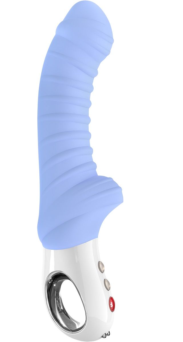 G5 Vibe TIGER – уникальная сек-игрушка с рельефной головкой от компании Fun Factory. Голубой вибратор поможет воплотить в жизнь самые смелые сексуальные фантазии, благодаря своим 12 режимам вибрации с разной интенсивностью. Внутри ствола находится вибромоторчик, который равномерно распределяет вибрации по всей длине ствола. Это обеспечивает стимуляцию абсолютно всех эрогенных зон во время вагинального секса.