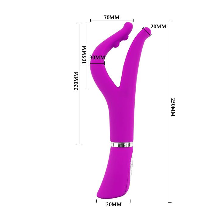 Эргономичный вибратор Basil – настоящий шедевр дизайнеров. 12 режимов мощной вибрации, низкий уровень шума, база для зарядки, заманчивый раздвоенный ствол из нежного силикона – всеми этими достоинствами обладает захватывающая интим-игрушка. Дерзкий вибратор имеет загнутый «носик», который проворно отыщет таинственную точку G, а ласковый отросток сделает впечатляющий эротический массаж клитора. Можно попробовать запустить один из отростков в попку.... В любом случае хозяйка аксессуара испытает необыкновенные ощущения и получит восхитительное наслаждение. Комфортная в использовании интим-игрушка способна разжечь пламя страсти и океан желания. Рабочая длина - 10,5 см. Диаметр отростков - 3 см. Минимальный диаметр отростков - 2 см.