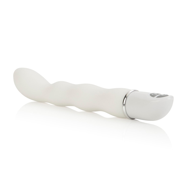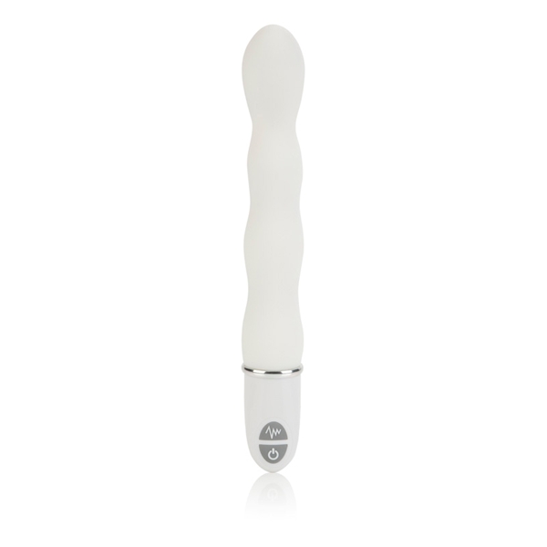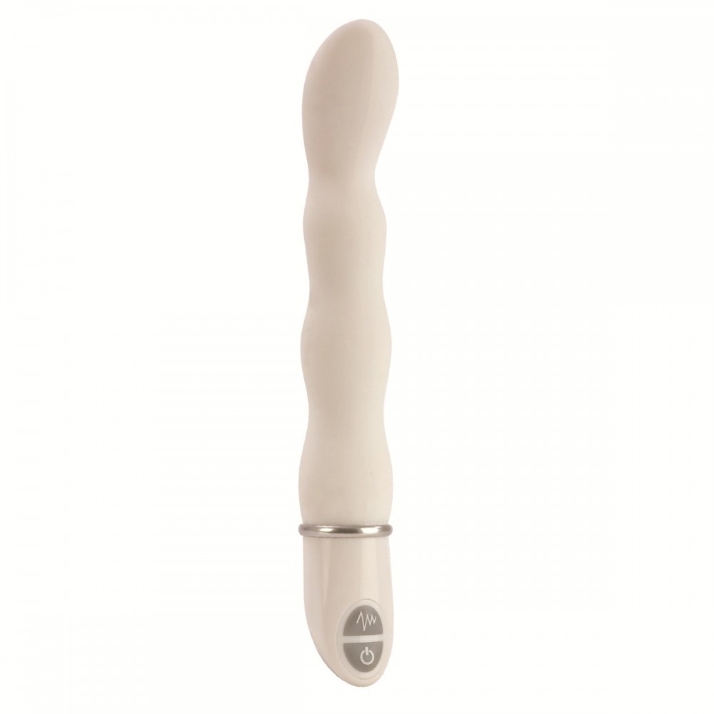 Водонепроницаемый вибратор белого цвета с пятью режимами вибрации и пятью режимами пульсации. Имеет немного загнутую более широкую в верхней части изделия форму. Без постороннего запаха, приятный на ощупь, быстро принимает температуру тела. Гигиенически безопасный.