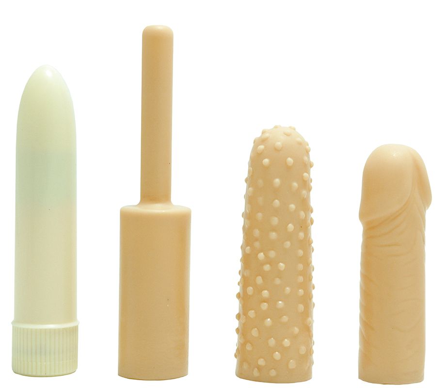 Классический мини-вибратор с 3 рельефными насадками SUPER SATISFACTION KIT.