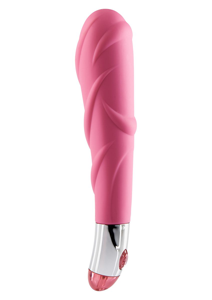 Вибростимулятор нежно-розового цвета с рельефной поверхностью, расширяется к верху. Несколько режимов работы вибрации и пульсации,управляются с помощью кнопки, расположенной у основания вибратора. Необычайно приятный на ощупь, без запаха. Рабочая длина - 14,5 см.