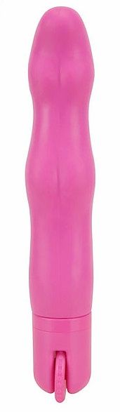 Розовый волнообразный вибромассажёр с колёсиком Magic Dial. Водонепроницаемый.