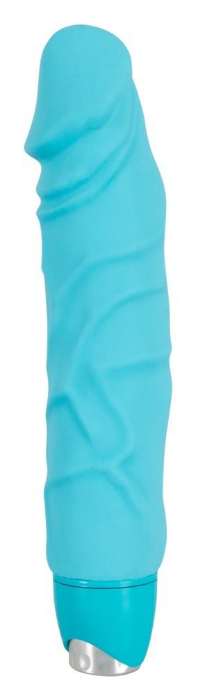 Бирюзовый вибратор-реалистик Joy. Приятная на ощупь силиконовая поверхность с венками.