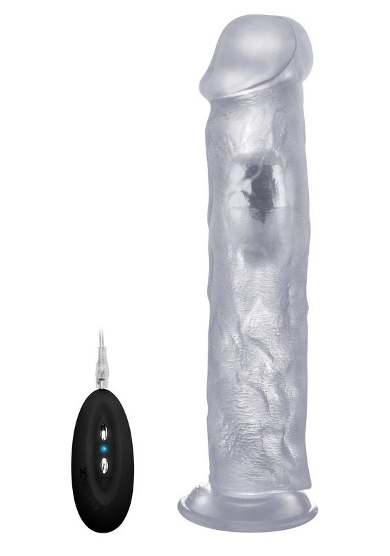 Прозрачный вибратор-реалистик Vibrating Realistic Cock 11. С присоской в основании для фиксации на плоскости. 10 режимов вибрации. Проводной пульт управления.