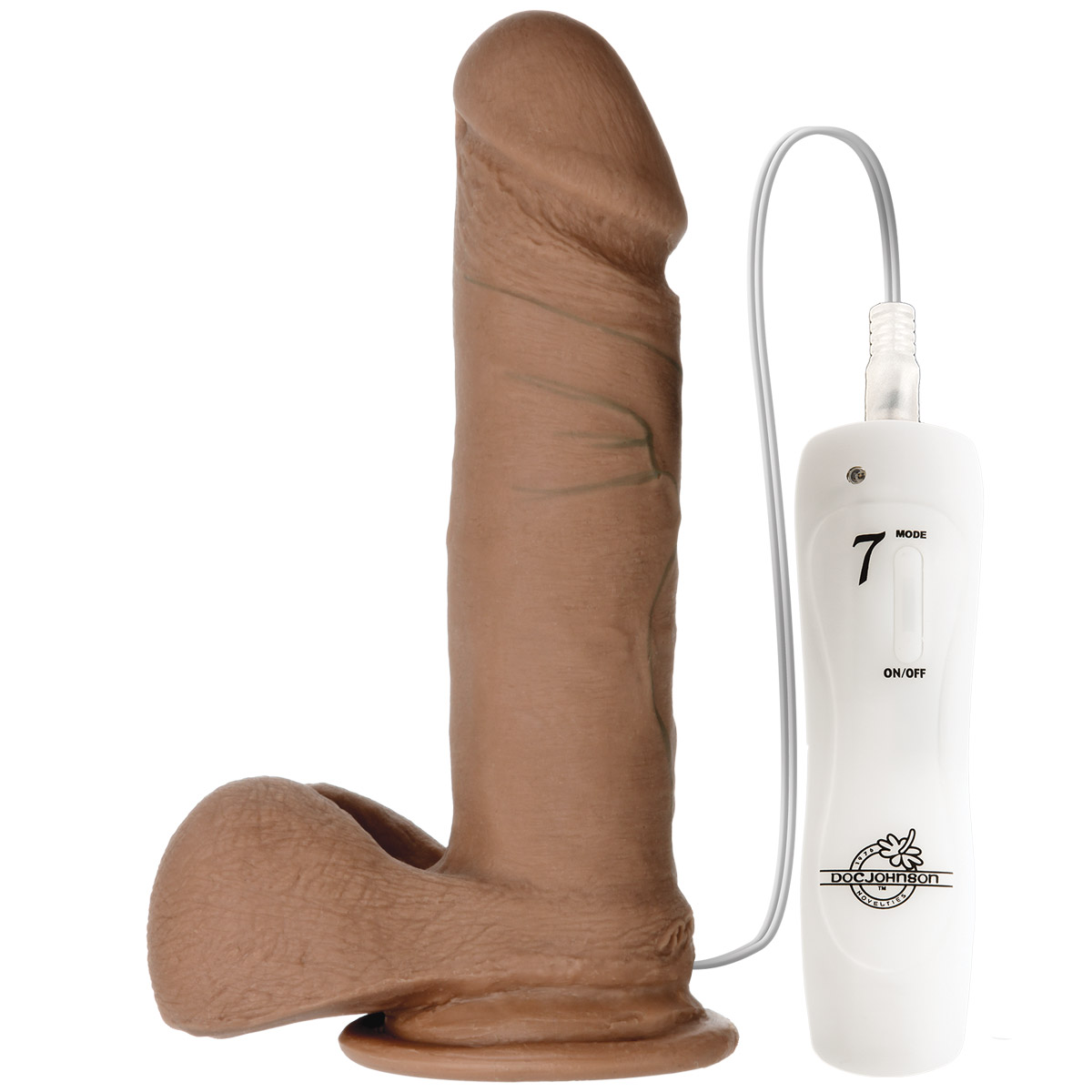 Вибратор кофейного цвета из специально разработанного ультра реалистичного материала UR3 поражает своей мягкостью и абсолютной схожестью по ощущению с кожей человека. Пульт управления вибрацией выносной, работает от 3-х пальчиковых батареек типа ААА, имеет плавную регулировку интенсивности вибрации. Тальк для ухода в комплекте. Длина - 21 см. Длина фаллоса от мошонки - 15,5 см. Диаметр - 4 см.