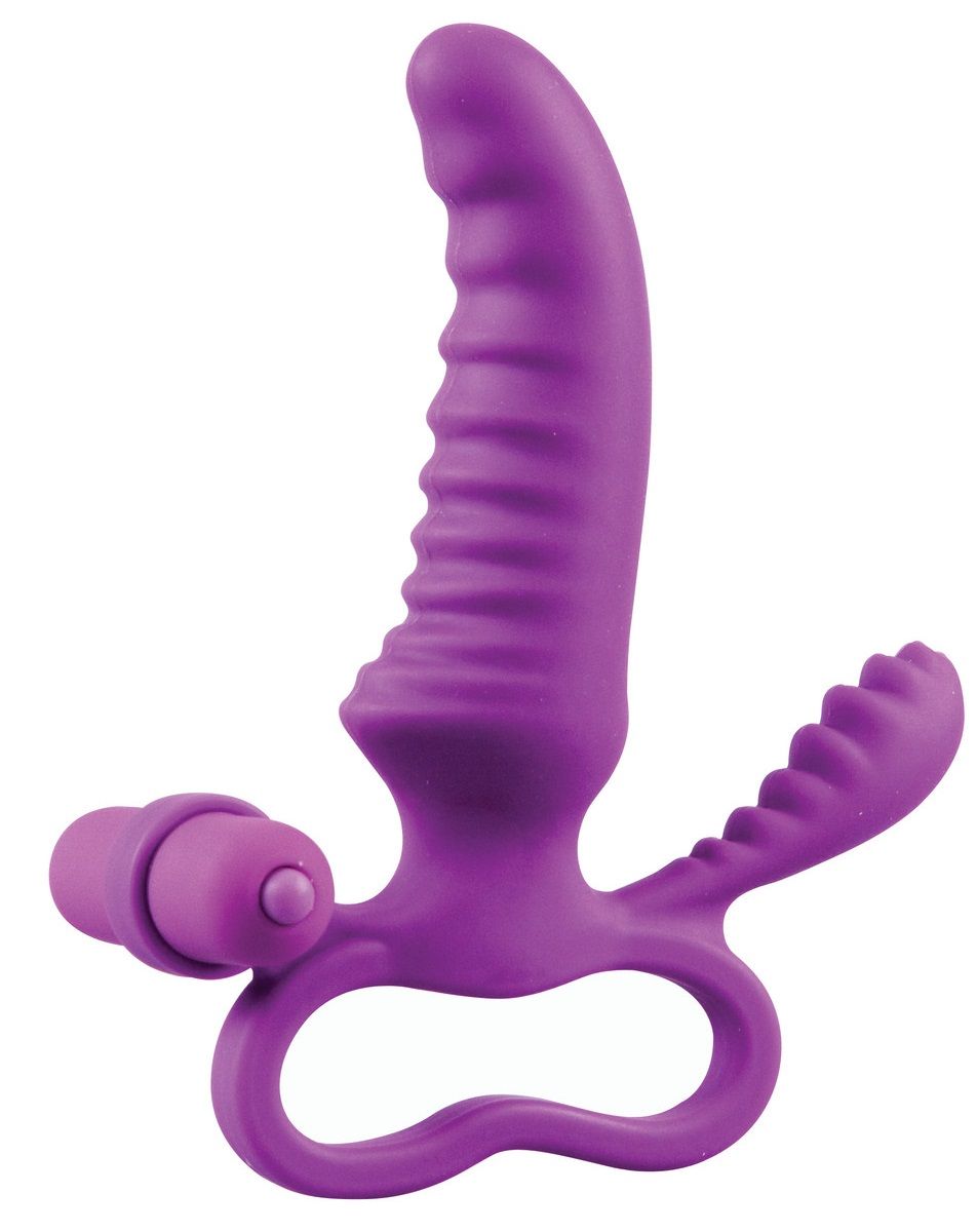 Вибростимулятор, изготовленный из силикона. Обеспечивает одновременно три различных вида стимуляции: вагинальную, анальную и клиторальную.10-скоростная насадка стимулирует клитор, а ребристый фаллоимитатор особой формы без проблем достигнет точки Джи. В то же время тонкий хвостик будет нежно касаться анальной зоны! Игрушка быстро нагревается до температуры тела. Имеет удобную рукоятку, что позволяет легко переключать регулятор скорости. Вибропуля, обеспечивающая 10 режимов вибрации, входит в комплект вместе с батарейками. Рабочая длина главного отростка - 11 см. Длина маленького отростка - 5 см., диаметр - 1,5 см. Батарейки в комплекте.