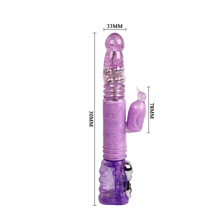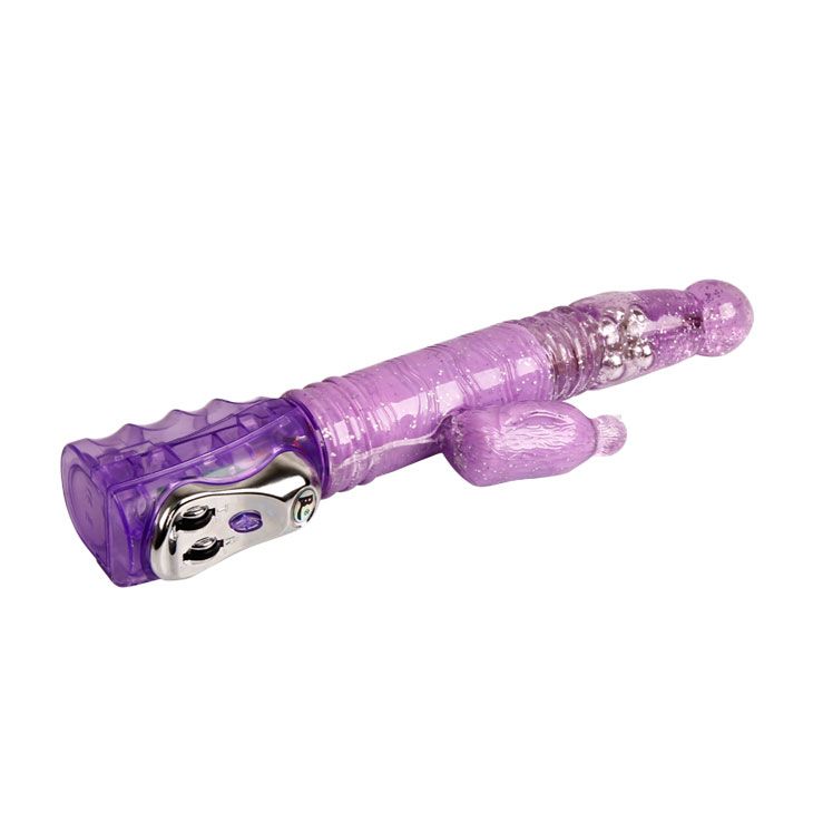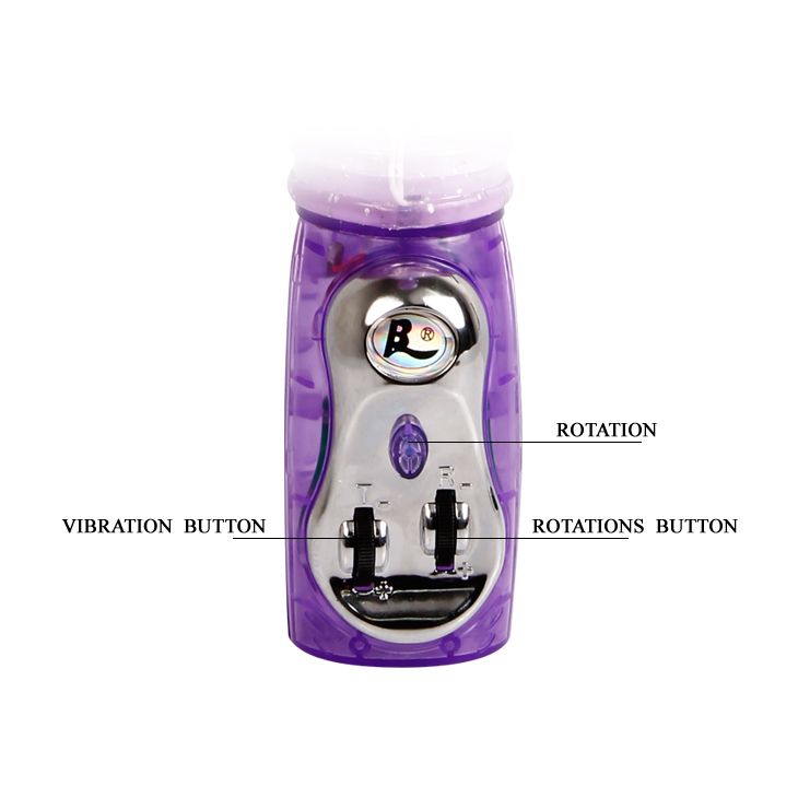 Фиолетовый вибратор с функциями вращения ствола, поступательными движениями и мощным клиторальным стимулятором в форме птички с режимами вибрации и ротации (регулируются колесиками на основании). Вращение осуществляется при помощи металлических шариков , расположенных внутри изделия. Водонепроницаемый. Рабочая длина - 14 см.