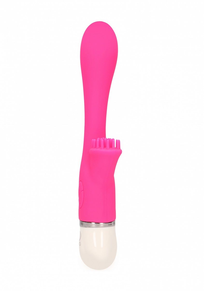 Пластичный перезаряжаемый вибратор розового цвета. Необычайно приятный, бархатистый на ощупь. Имеет клиторальный стимулятор в виде мягкой щеточки. Вибратор имеет 10 режимов вибрации и его можно сгибать в любом направлении. Управление производится при помощи кнопок у основания игрушки. Рабочая длина - 11 см.