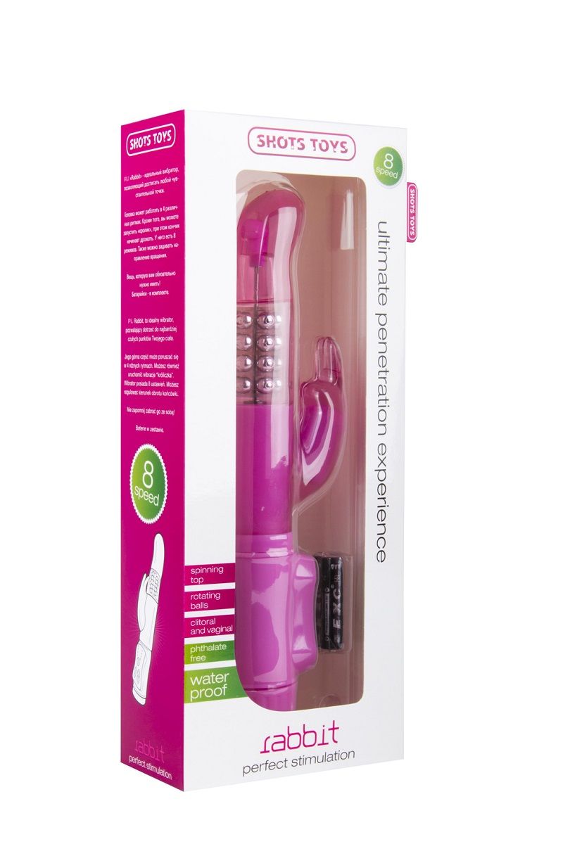 Многоскоростной вибратор с режимами вращения ствола и мощным клиторальным стимулятором в виде зайчика. Имеется возможность менять направление вращения (направо-налево). Мягкий, имеет гладкую поверхность. Внутри ствола расположены металлические шарики. Водонепроницаемый. Имеет 8 режимов вибрации, управление производится при помощи кнопок у основания игрушки. Рабочая длина - 11 см. Батарейки в комплекте.