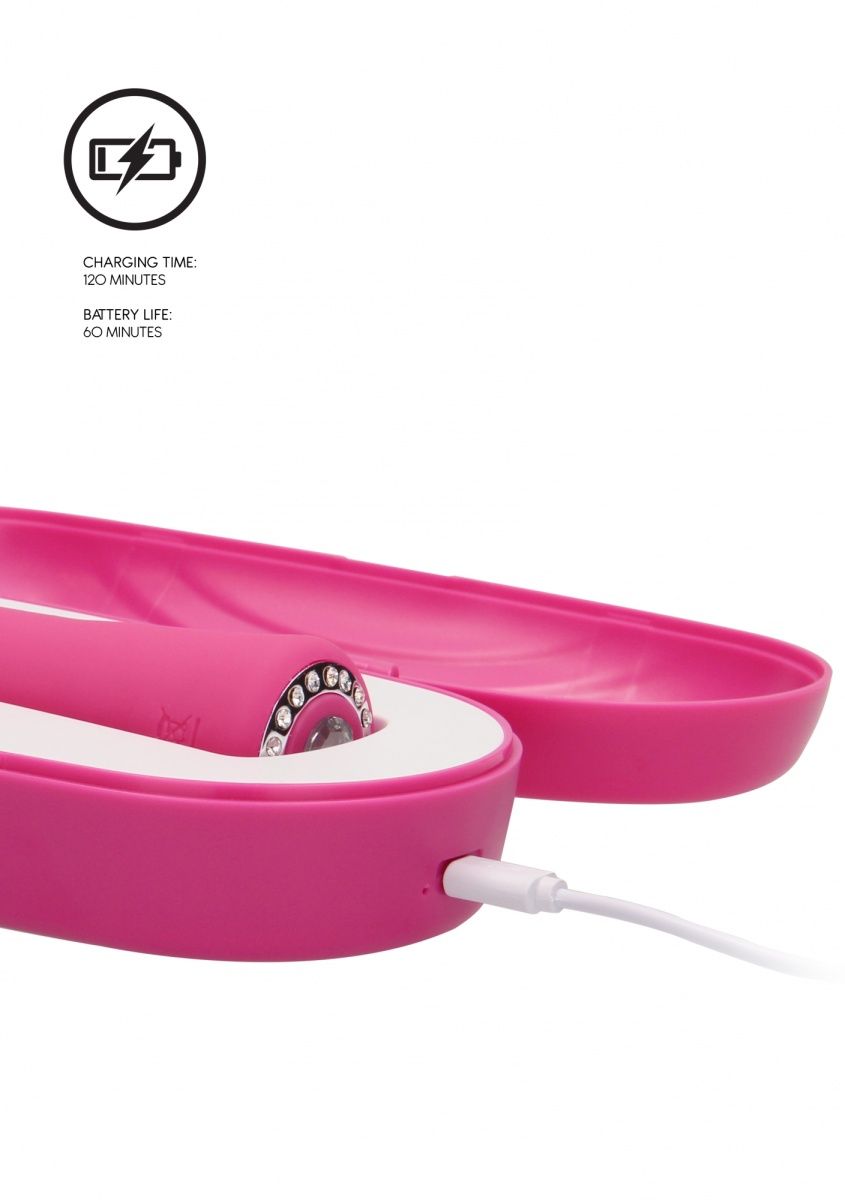 Glimmer - вибромассажер для точки G с инновационным электродвигателем нового поколения F1. Он делает интенсивную стимуляцию очень мягкой даже при мощном максимальном воздействии. Игрушка имеет 10 режимов вибрации, способной достигать 8500 оборотов в минуту. Вибромассажер имеет выпуклую, изогнутую головку. Очень гибкая и эластичная, она может гнуться на 36 градусов. Discretion представляет собой сочетание высоких технологий и роскоши ювелирных украшений. Эта изящная интимная игрушка оснащена на манер современных электронных устройств. Вместо обычной коробки все изделие представлено в стильном компактном портативном кейсе в оттенке самого девайса. Абсолютно гладкая и обтекаемая поверхность имеет кнопки управления из сверкающих кристаллов, имитирующих бриллианты. Ещё одним преимуществом является полная водонепроницаемость. Рабочая длина - 14 см.
