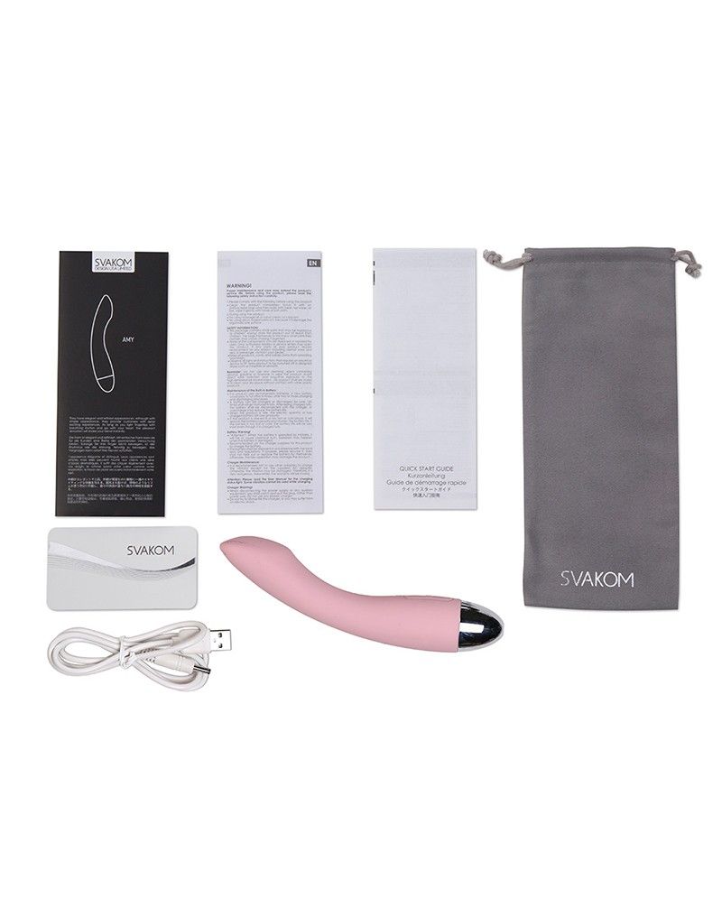 Amy - это водонепроницаемый массажер анатомической формы. Благодаря новшествам, которые ввела компания Svakom, Amy становится лучшим выбором для тех, кому важна безопасность, удобство и эффективность их секс-игрушек. Благодаря своей форме он фокусируется на самых чувствительных зонах женского тела. Элегантный, средних размеров вибратор со стимулятором для точки G приятен не только на взгляд, но и на ощупь. Amy не содержит фталатов и абсолютно гипоаллергенна. Конструкция позволяет использовать игрушку в ванной или душе. A my имеет 6 режимов работы, которыми можно легко управлять с помощью одного прикосновения. Длина - 17 см. Диаметр - 3 см. Время зарядки - 1,5 часа. Время длительного использования - 3 часа.