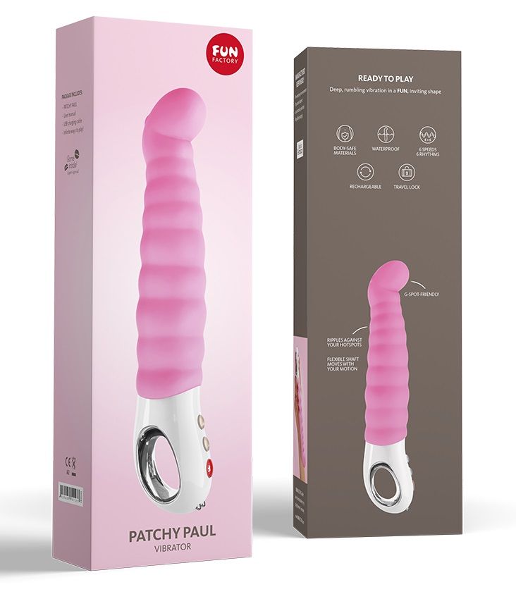 Самый популярный вибратор в Европе! Эргономичный вибромассажер Patchy Paul G5 от немецкой компании Fun Factory является лучшим представителем в знаменитой линейке Patchy Paul. Упругий ствол длиной 23 см и диаметром 4.4 см имеет ребристую поверхность, что усиливает приятные ощущения во время мастурбации. Глубокая вибрация позволяет использовать массажер для всех видов стимуляции: клиторальная, анальная, вагинальная.