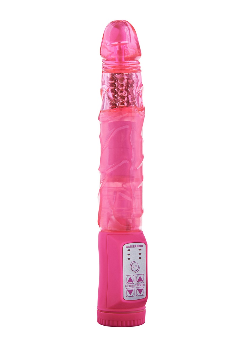 Водонепроницаемый мультискоростной рельефный вибратор . Имеет три скорости вибрации и три скорости вращения ствола с возможностью менять направление вращения. Вращение осуществляется при помощи металлических шариков , расположенных в верхней части игрушки.